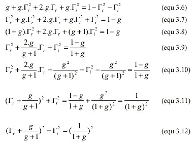 它也是复平面 (r, i)上圆的参数方程(x-a)2 + (y-b)2 = R2 (方程3.12),以(-g/g+1, 0)为圆心,半径为1/(1+g)。