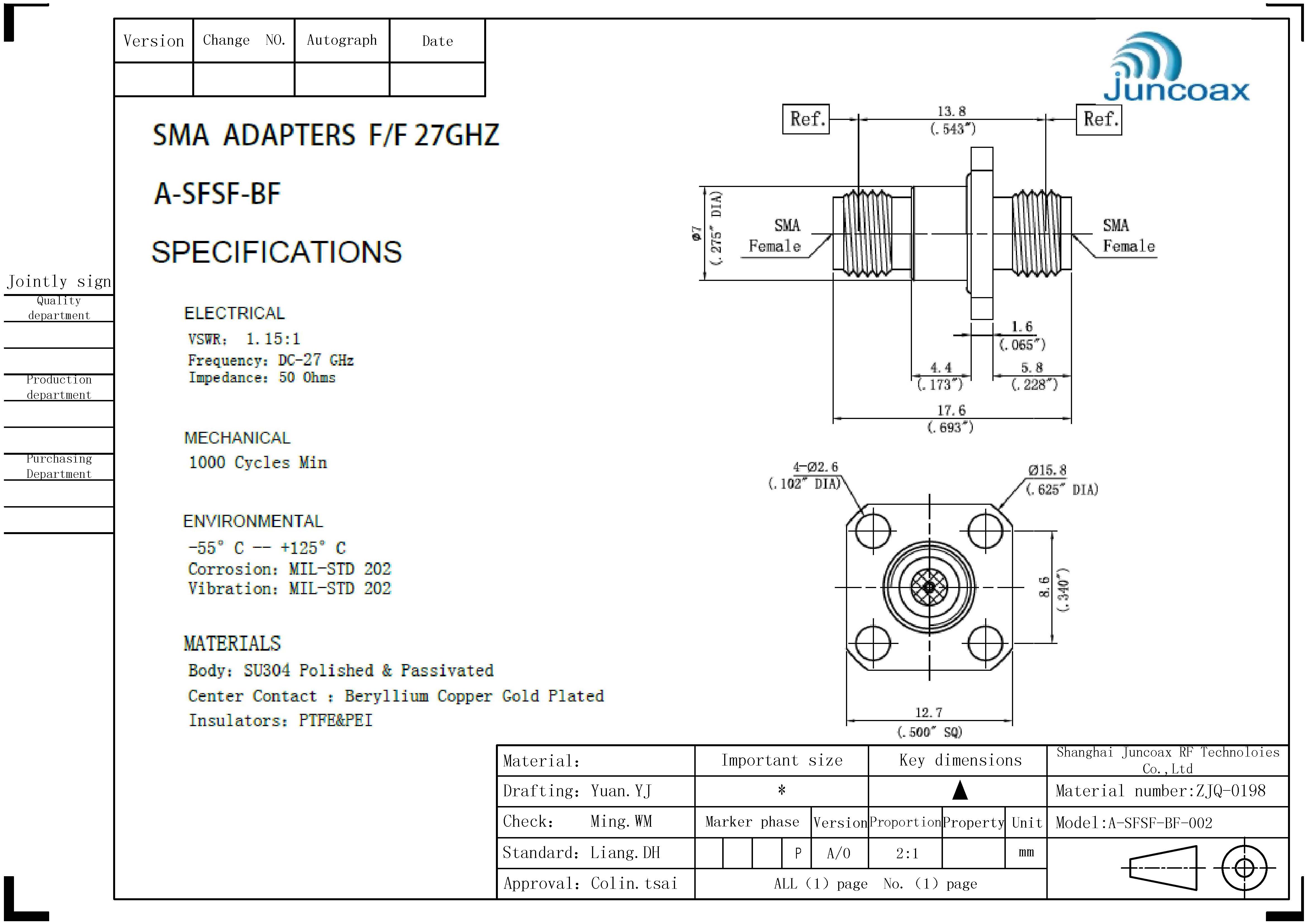 SF-SF-BF-198 转接器规格书下载