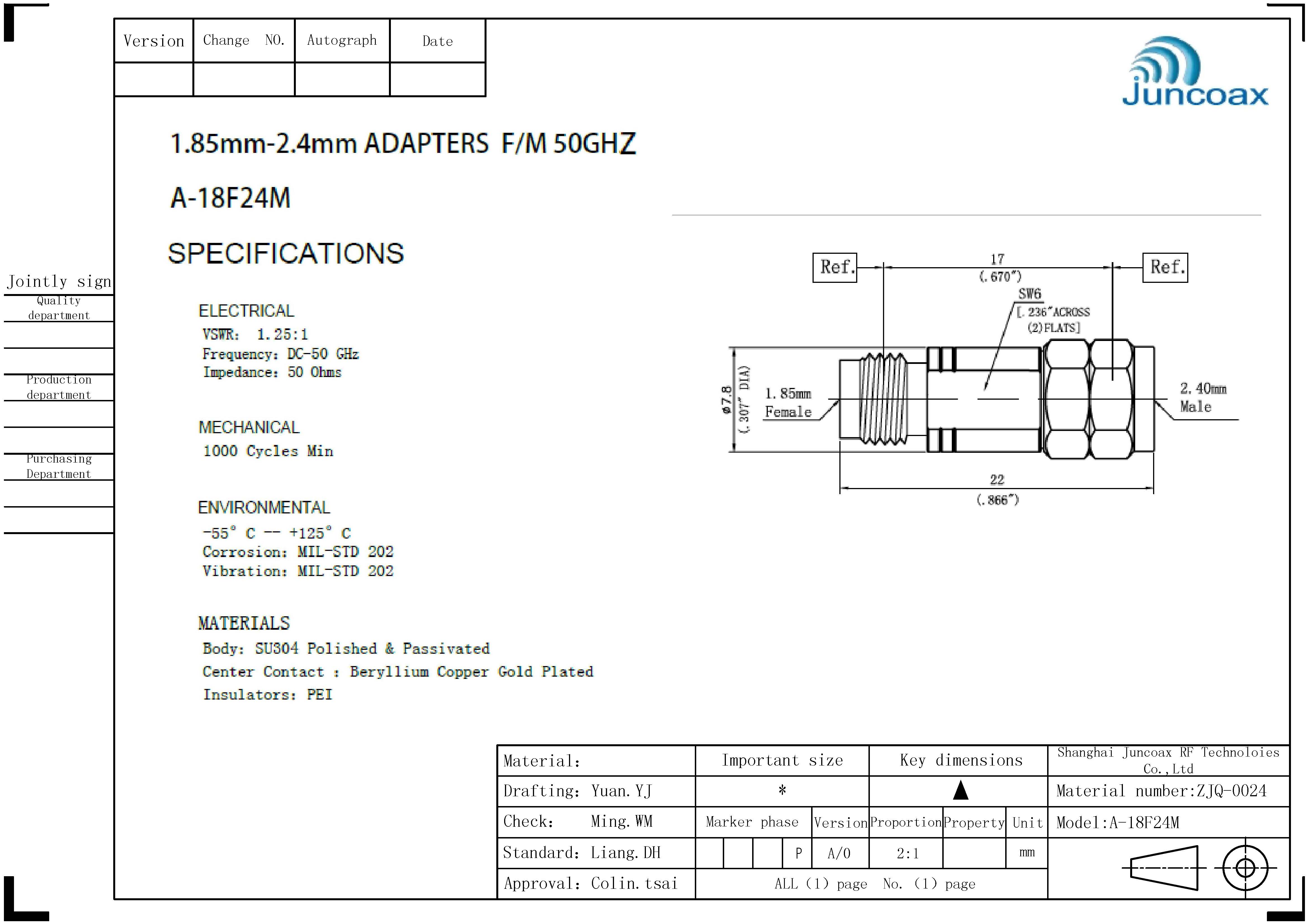 1.85mm系列转接器单个规格书