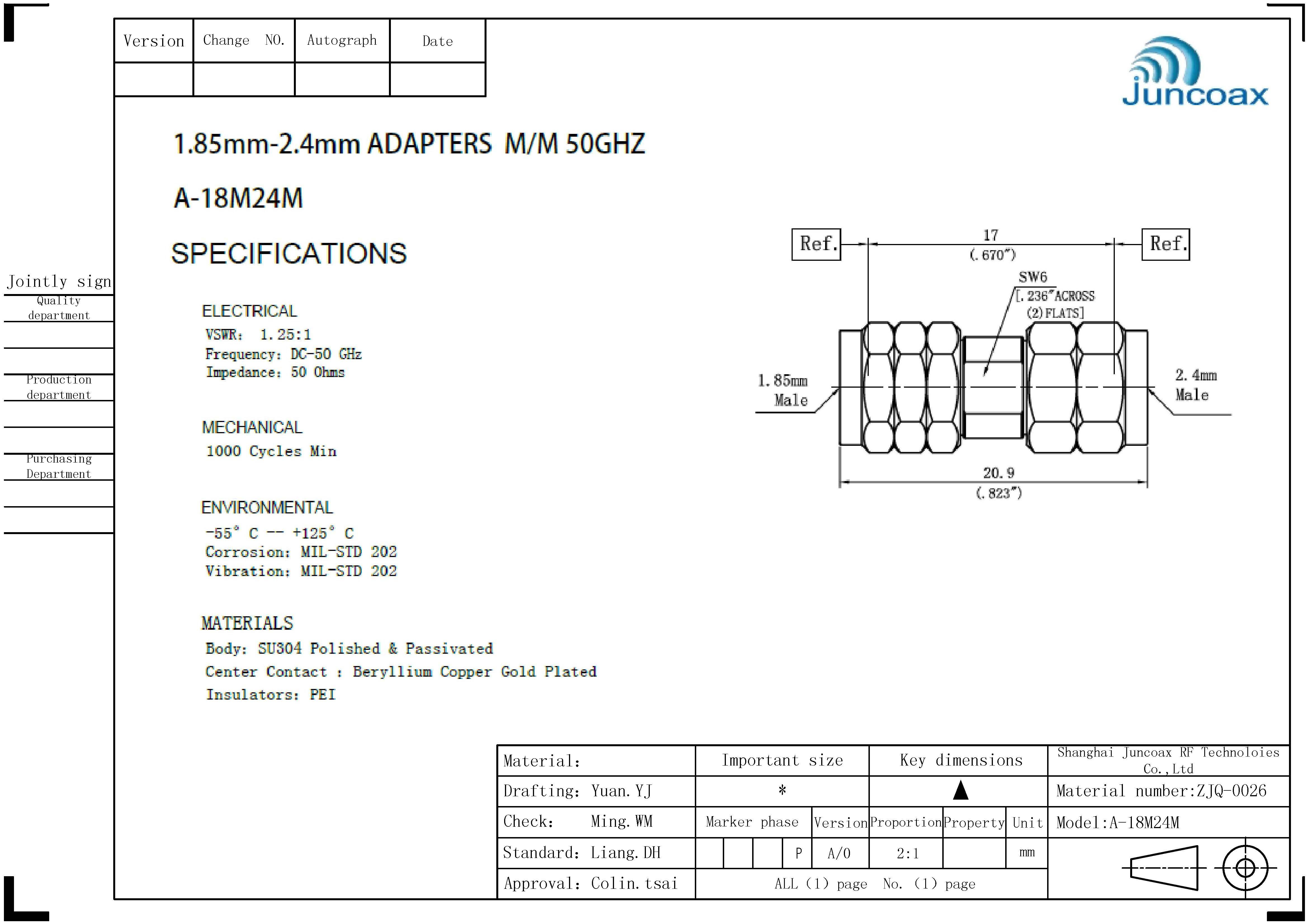 1.85mm系列转接器单个规格书