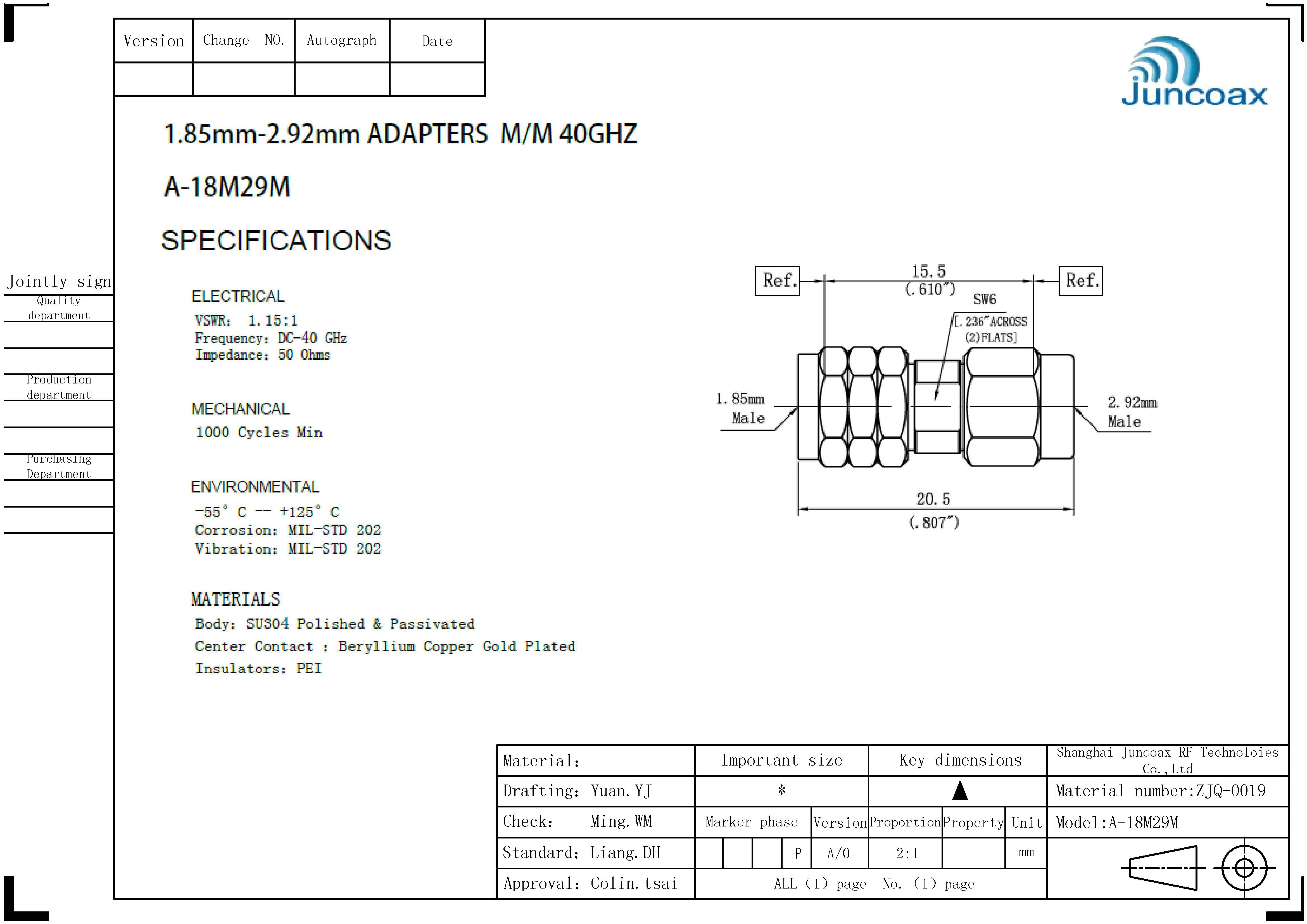 1.85mm系列转接器单个规格书