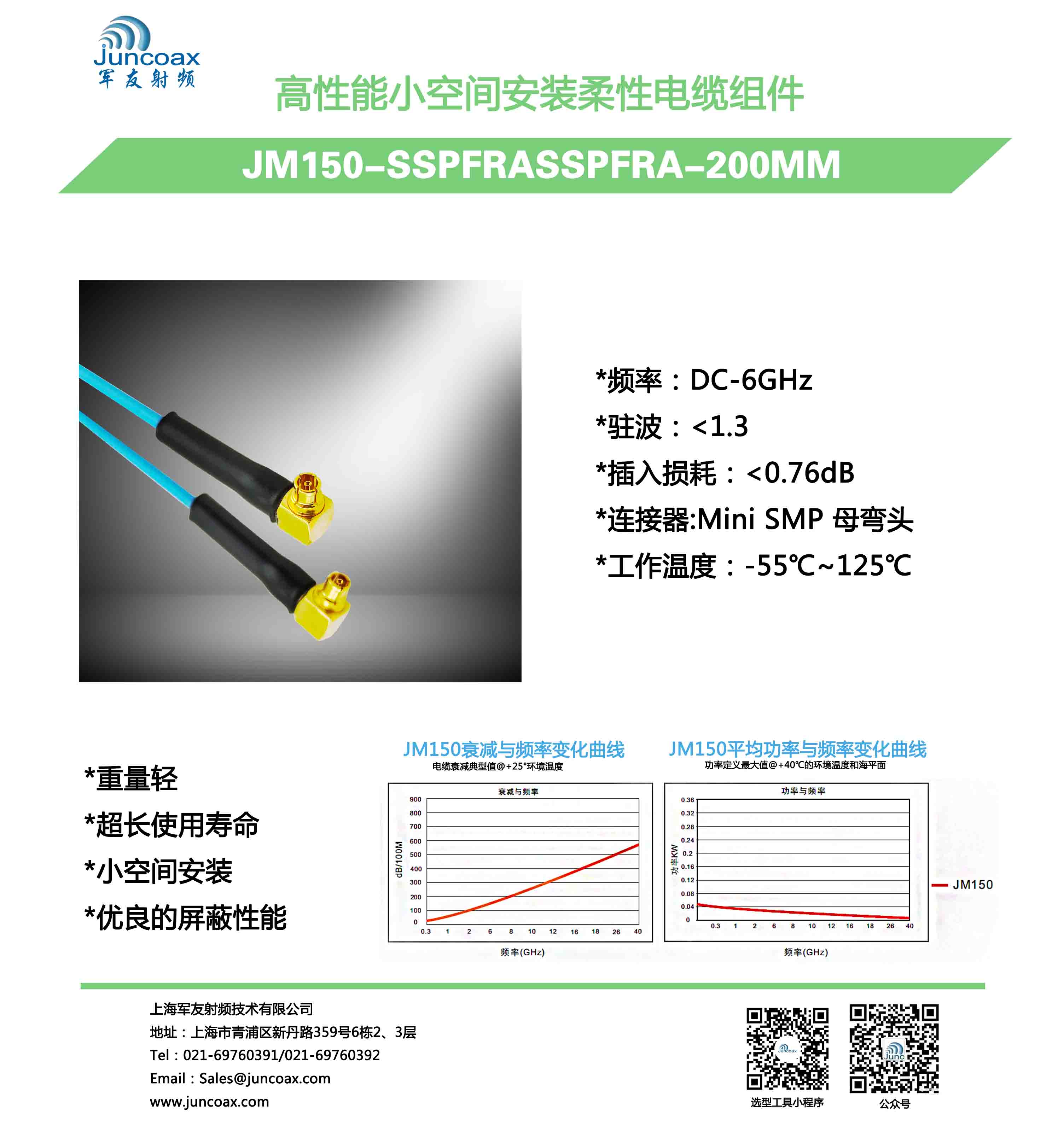 JM150-SSPFRASSPFRA-200MM 高性能小空间安装柔性电缆组件