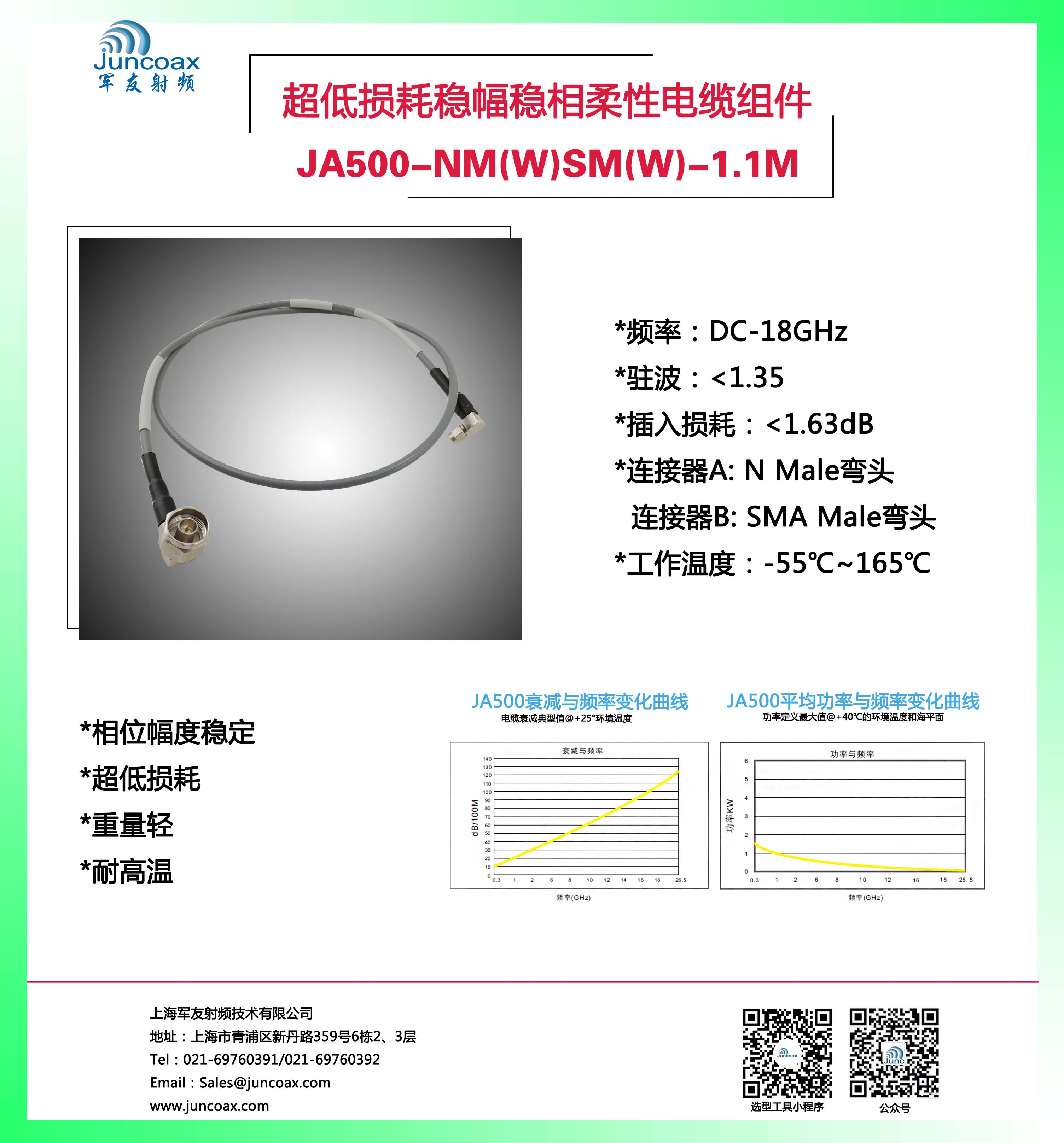 超低损耗稳幅稳相柔性电缆组件 JA500-NM(W)SM(W)-1.1M