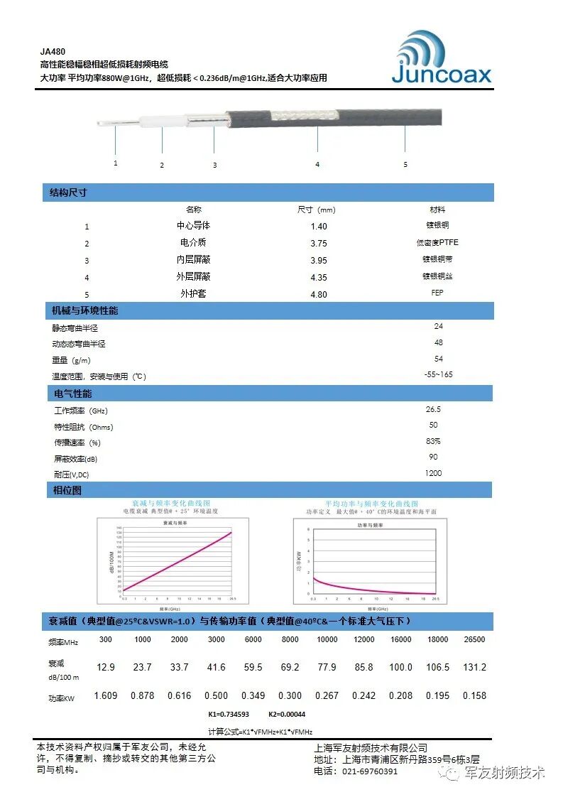 JA480稳幅稳相超低损耗射频电缆关注我获得更多精彩
