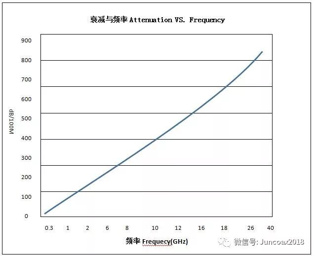 衰减与频率 Attenuation VS. Frequency(dB/100m)
